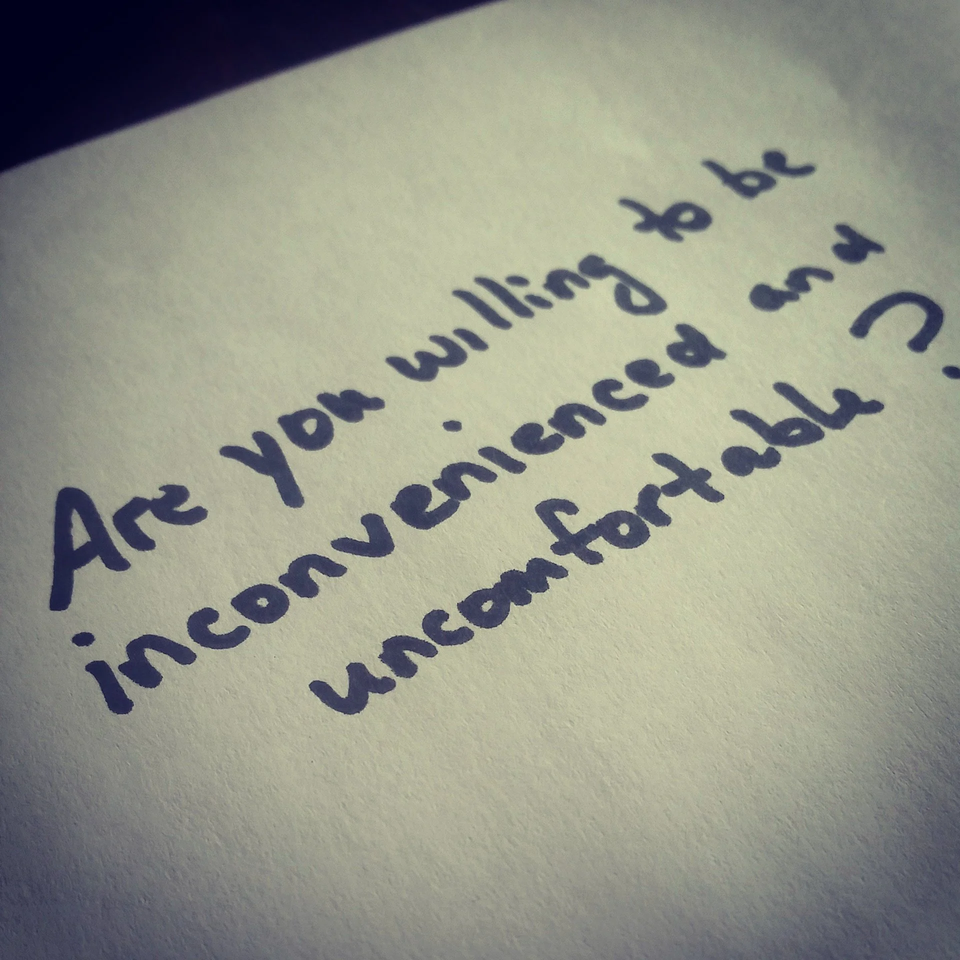 I am learning to live with inconvenience because I feel that it is important to do so. If not to stand with those abused and exploited by colonisation and capitalism, then because Inconvenience is coming to the world, whether we like it or not. Would the letter from the future say, “Just exercise self-restraint and inconvenience now and see the world heal to a degree that is still habitable?”. The ultimate inconvenience I can see is the extinction of the human race and the annihilation of the Planet in the name of our comfort and convenience.